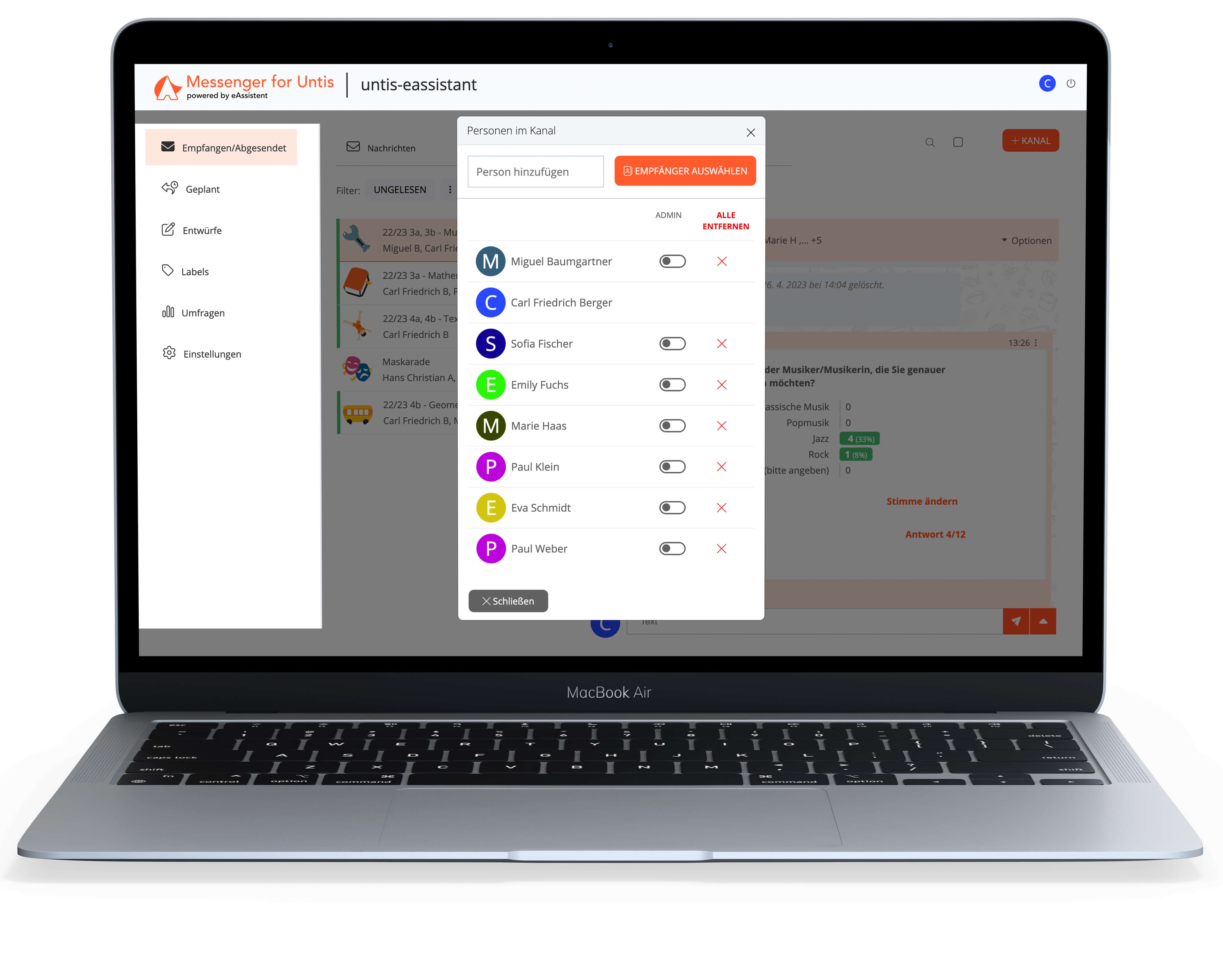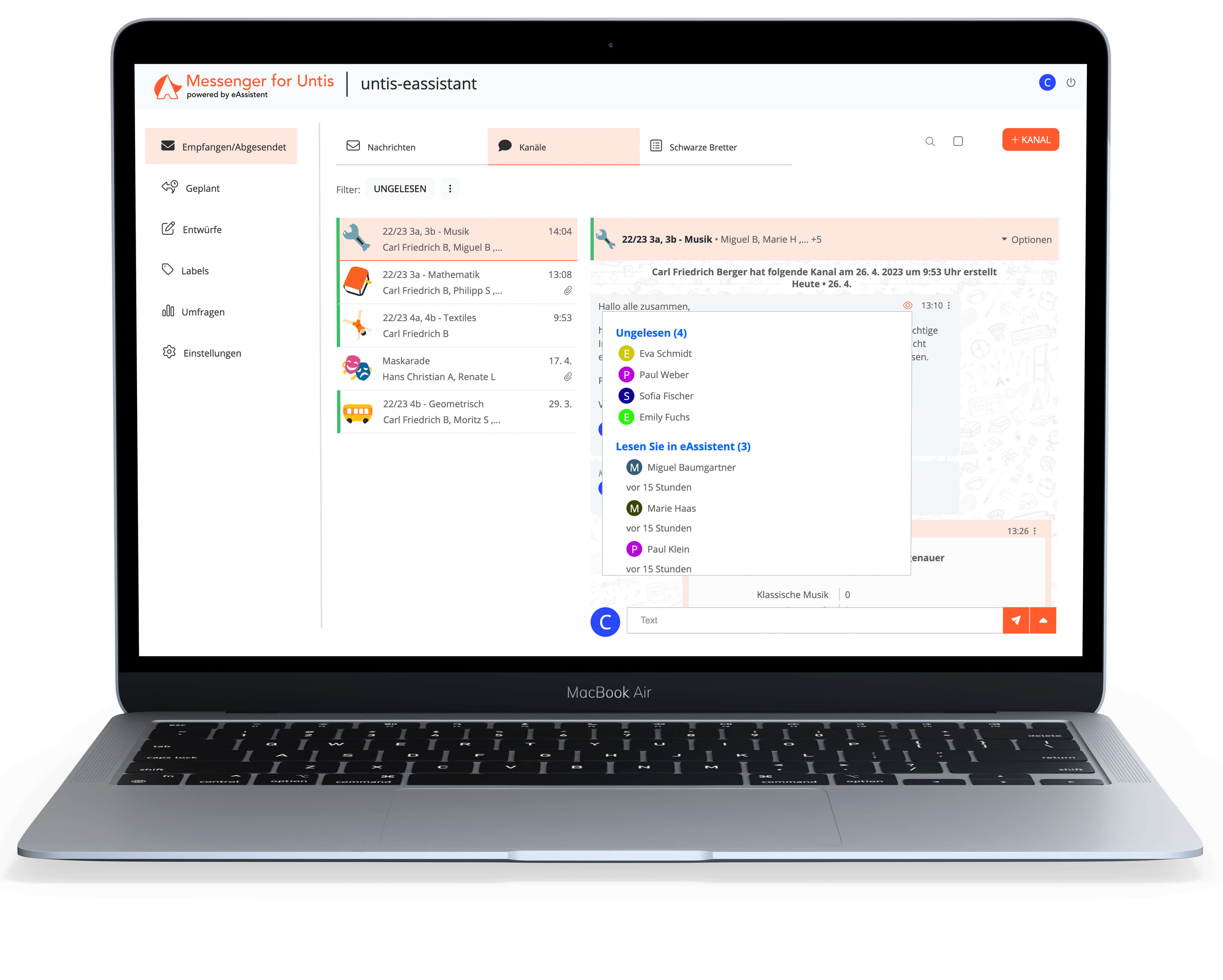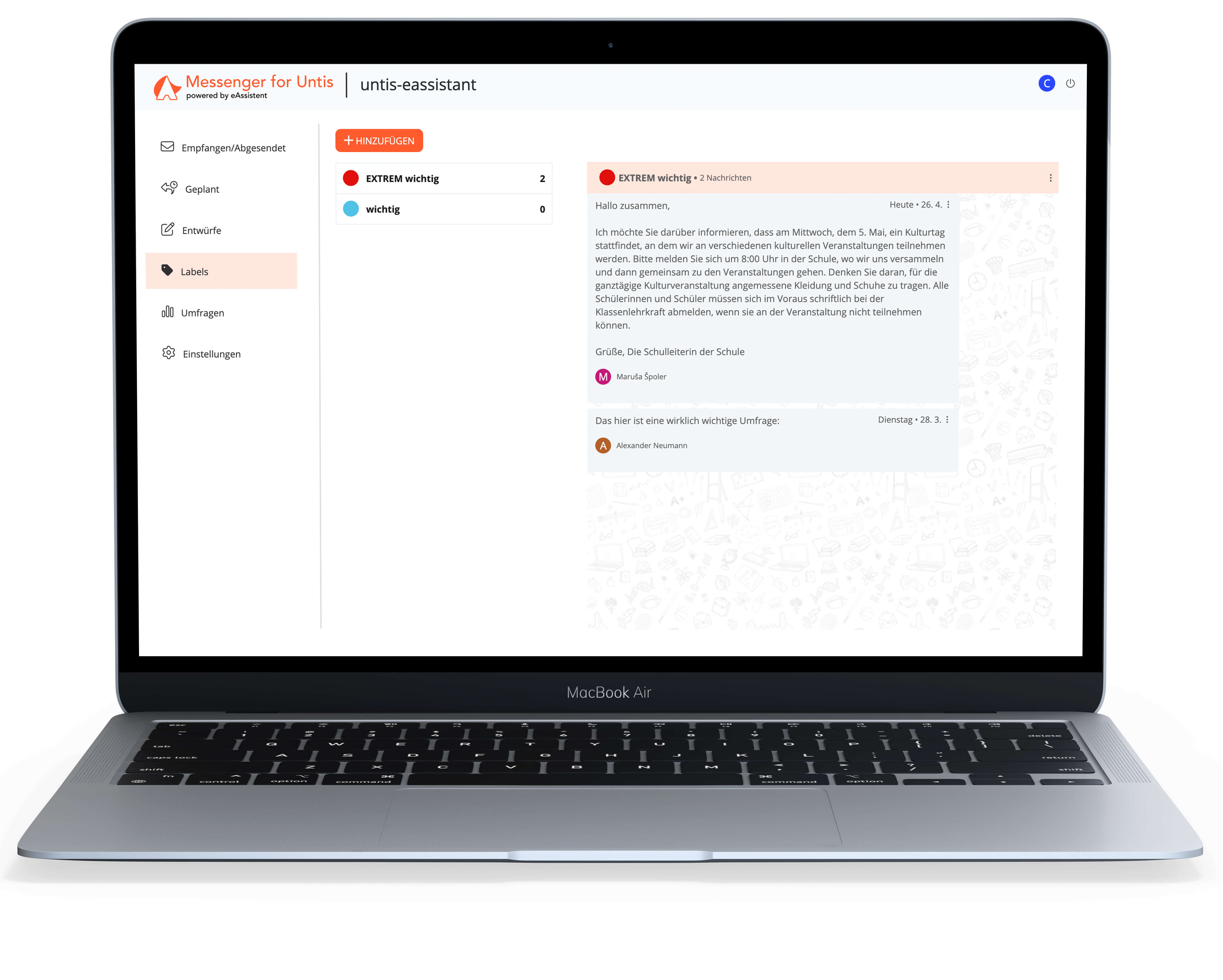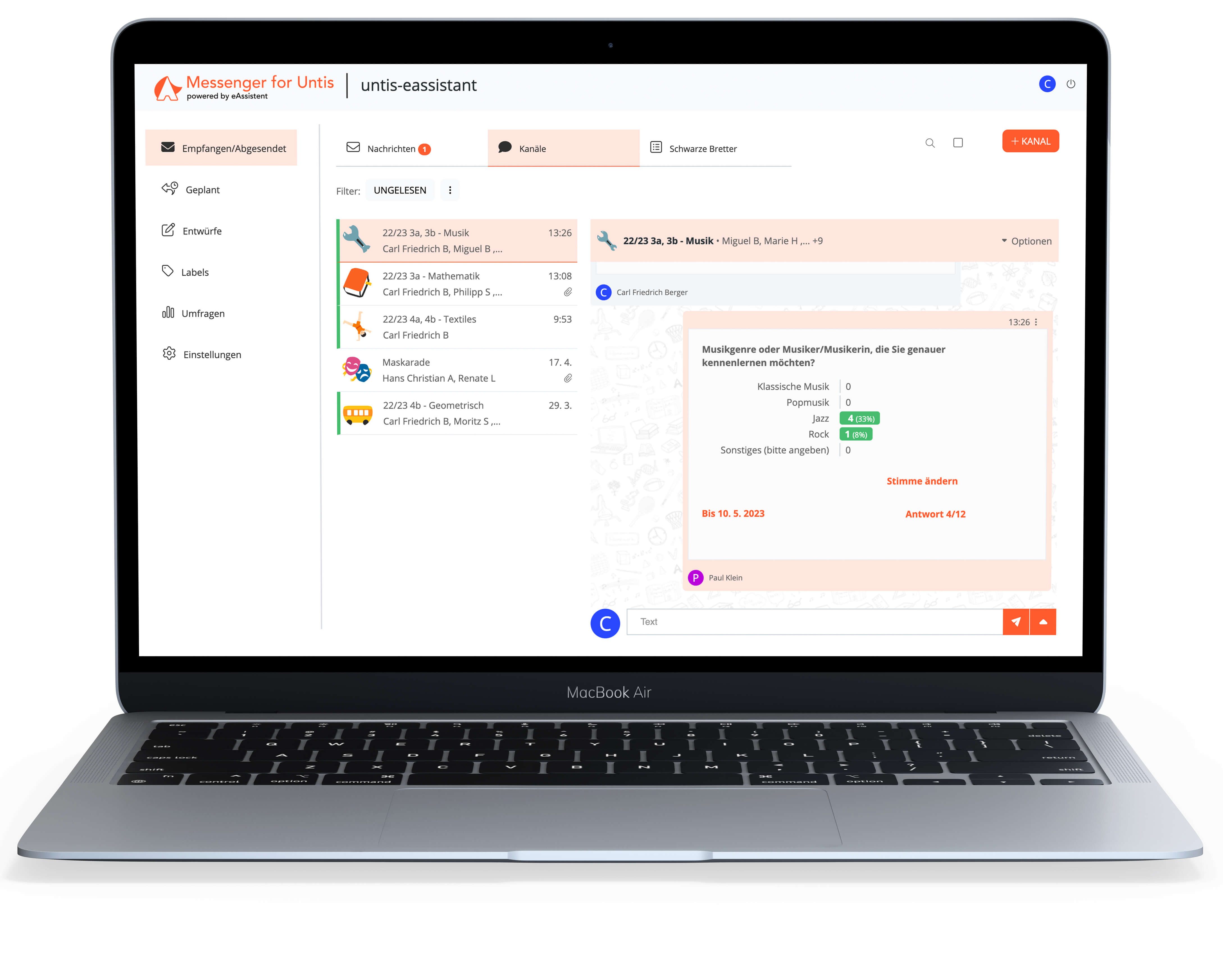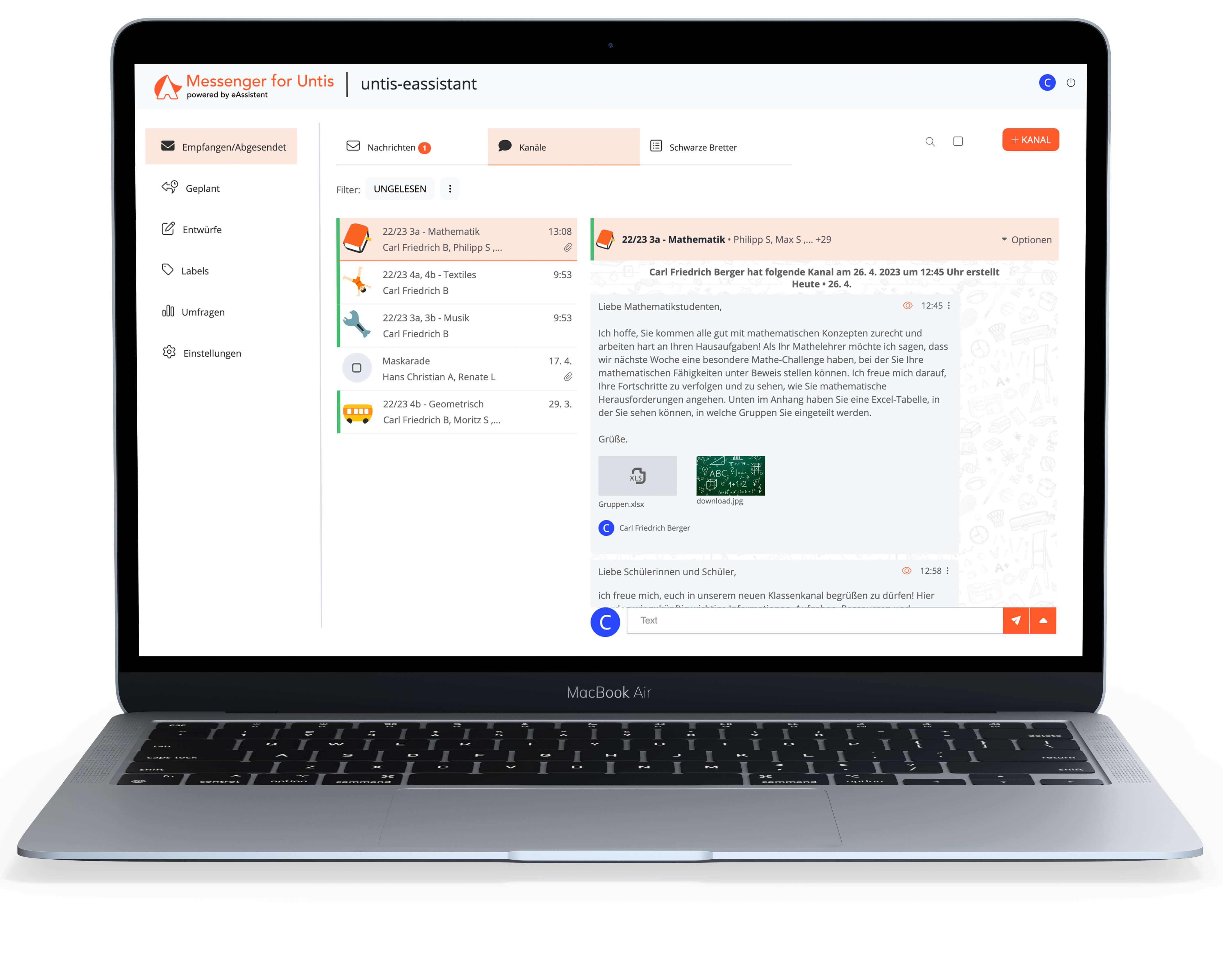 Unsere Lösung ist auf die Bedürfnisse der Schulen zugeschnitten, die zuverlässige und flexible Kommunikationsarten benötigen und einen sicheren Austausch von Informationen und Materialien mit Schülern in Eltern gewährleisten wollen.