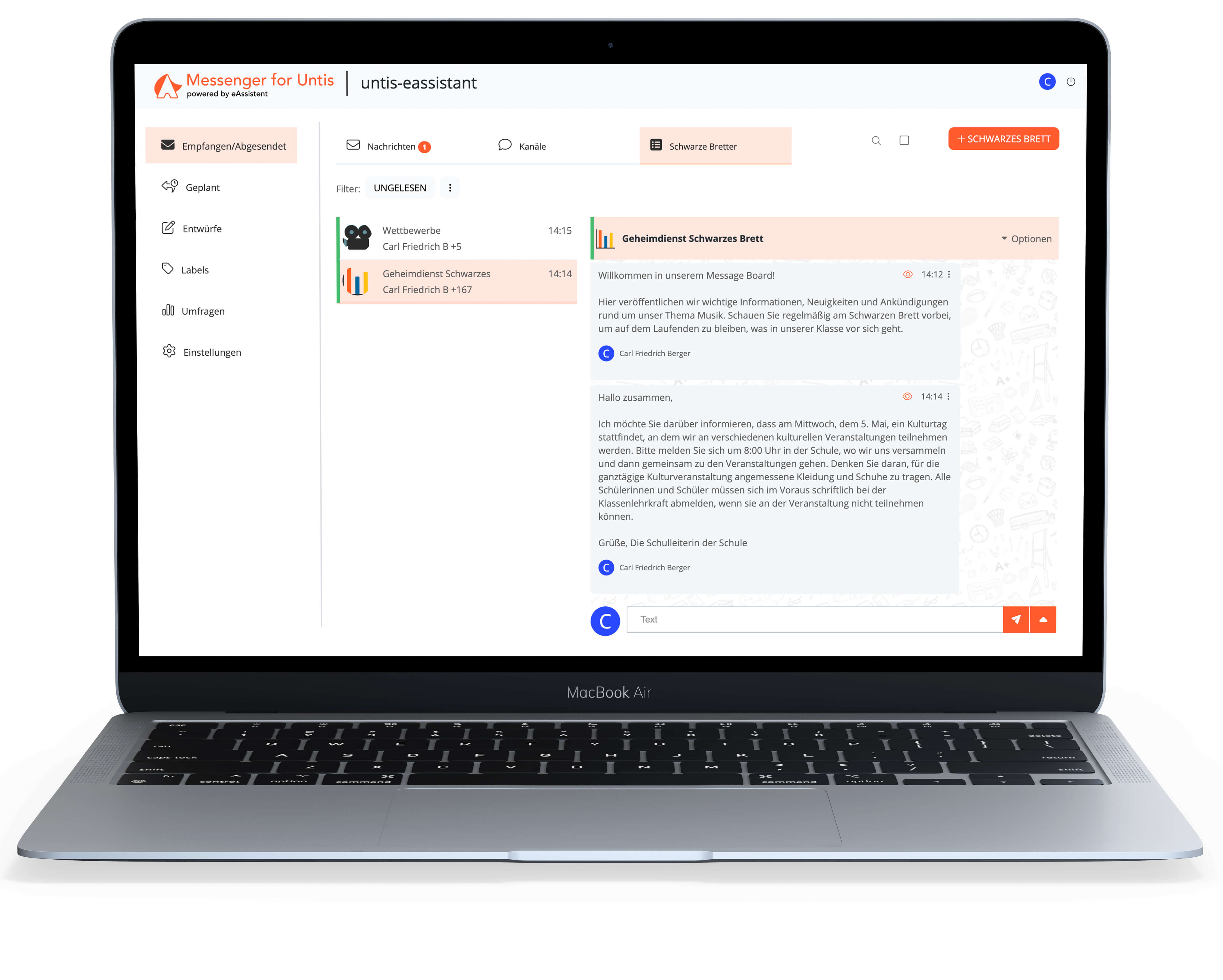 In einer Zeit der ständigen Kommunikation haben wir eine Lösung entwickelt, die Lehrkräfte, Schüler und Eltern verbindet, einen einfachen und effizienten Informationsaustausch ermöglicht und die Schulgemeinschaft bei jedem Schritt unterstützt.