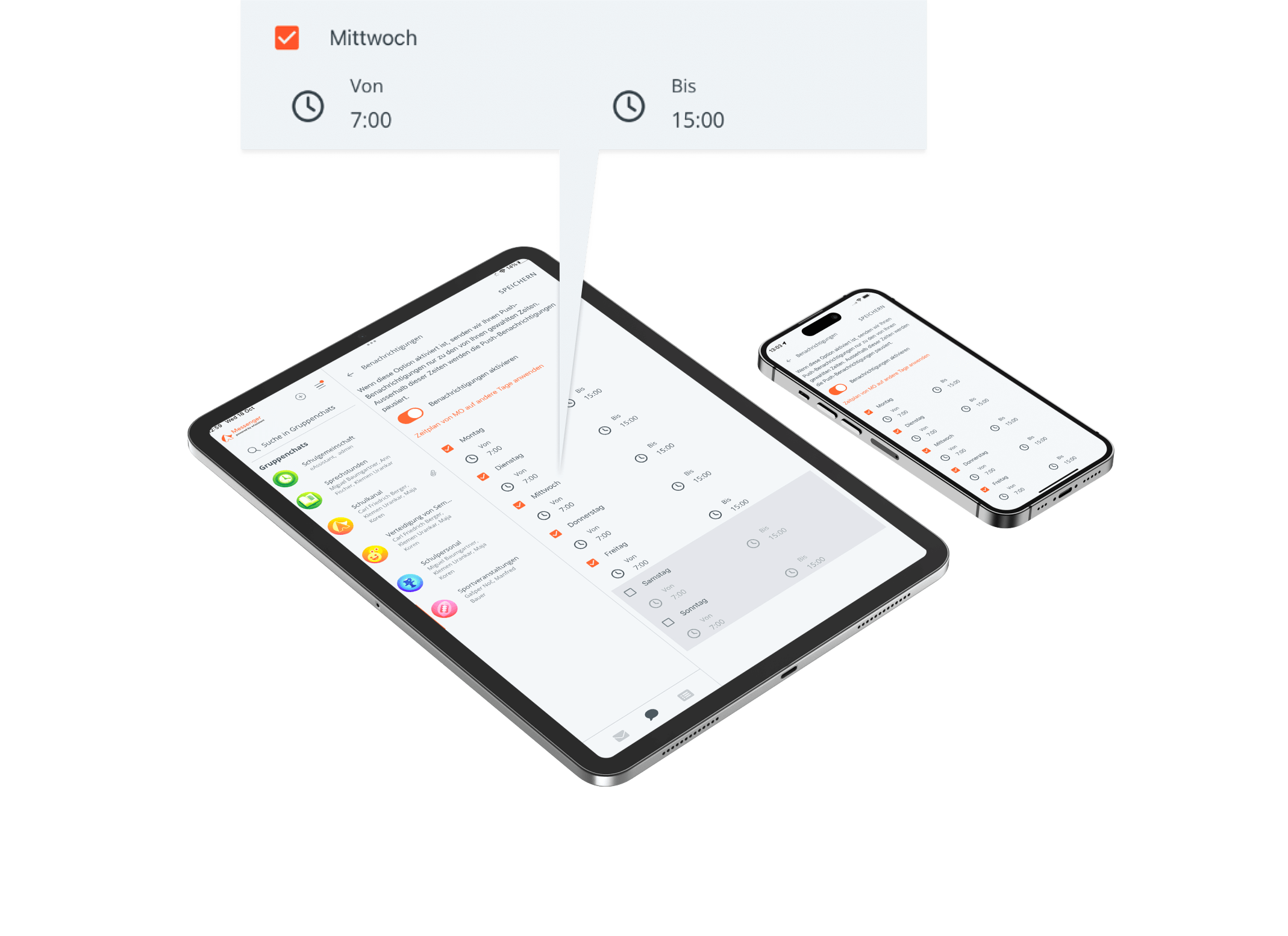 Daher ermöglicht Ihnen unsere Lösung, dass Sie selbst einen Zeitraum festlegen, zu dem Sie sich ausruhen und keine Benachrichtigungen erhalten möchten.